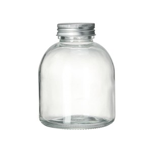 Crafted from ordinary glass, this bottle combines durability with aesthetic appeal. Its straight cylindrical shape ensures stability and ease of handling, while the transparent glass allows for clear visibility of the contents.