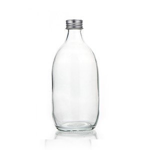 This is a high-quality 500ml beverage bottle made of clear, ordinary glass. Its classic cylindrical design and transparent body are ideal for effectively showcasing your beverages. The bottle comes with a sturdy silver-colored metal cap, ensuring an air-tight seal for product freshness. |