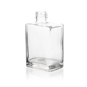 A high-quality, square-shaped beverage bottle made of transparent ordinary glass. It features a threaded neck for secure cap sealing and a clear, minimalist design that elegantly displays the contents inside. |