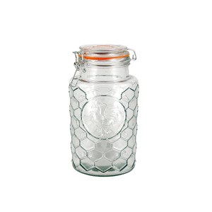 Product Description: Classic Rooster Design Glass Storage Jar with Metal Clasp