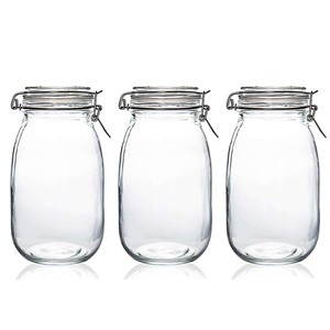 This high-quality round glass jar features a classic metal clasp closure, making it an ideal and versatile storage solution. Crafted from clear, transparent glass, it allows for easy content identification at a glance. The sturdy metal clasp ensures an airtight seal, effectively preserving the freshness and flavor of your contents. With a generous capacity, it is perfectly suited for both pantry organization and stylish display.