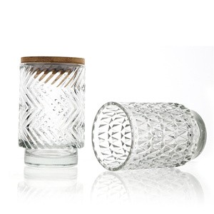Material & Craftsmanship: Made of high - quality glass, it boasts a transparent, elegant appearance. The intricate geometric patterns on the body add a unique visual charm, while the wooden - topped lid enhances the natural, rustic style.