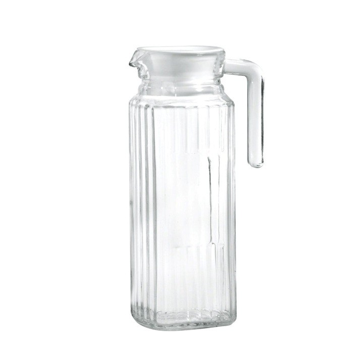 Glass pitcher bistro jug, 90mm dia.x 245mm h Product Item:SP02549 Material: Glass Dimension:90mm Dia.x 245mm H Capacity:1000ml Glass Pitcher Bistro Jug Inquiry Send Email