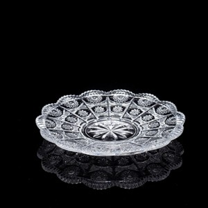 Crafted from ordinary glass, this plate boasts a delicate yet durable design. Its scalloped edges and intricate embossed patterns create a sophisticated visual, making it suitable for both everyday use and formal dining occasions.