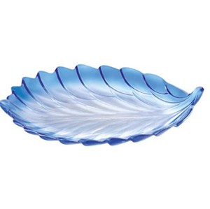 Crafted from ordinary glass, this plate boasts a delicate leaf-inspired design with a translucent body and a blue accent along the rim. Its lightweight yet sturdy structure (weighing 780g) ensures durability while maintaining a refined, elegant appearance.