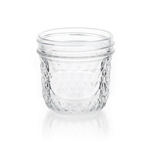 This product is a 250ml clear glass jar with a classic cylindrical shape, designed for versatile use in food storage, beverage serving, and more.
