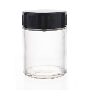 A classic cylindrical jar made of high-clarity ordinary glass, designed for versatile storage solutions. The black ribbed plastic lid ensures a secure seal, making it ideal for both commercial and personal use. Its transparent body allows easy content visibility, while the minimalist design suits modern packaging aesthetics.