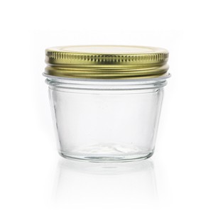 This product is a 100ml glass jar with a gold metal lid, designed for versatile use in food storage, crafting, and other applications.