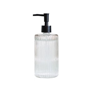 This 400ml capacity soap dispenser is crafted from clear glass with an elegant ribbed design, paired with a durable black pump head. It offers a perfect blend of modern style and functionality, ideal for dispensing hand soap, lotion, or dish soap in various settings. Its transparent body allows for easy monitoring of liquid levels. |