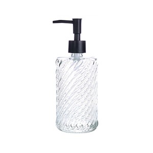 This is an elegant and durable lotion pump bottle made of clear, standard glass. It is designed to combine functionality with a modern aesthetic, making it ideal for premium product packaging. |