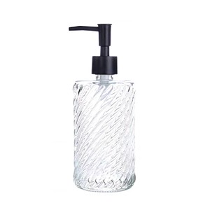 An elegant and practical glass soap dispenser with a smooth-action pump mechanism. Crafted from clear glass with a subtle twisted pattern, it combines functionality with a modern aesthetic. |
