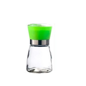 Product Description: Clear Glass Spice Bottle with Green Grinder Top