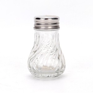 A 70ml capacity spice bottle shaker crafted from clear glass, featuring a sleek silver-toned metal lid. This shaker is designed for efficiently adding spices and seasonings to a variety of dishes. |
