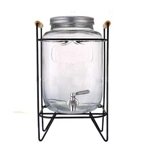 Crafted from ordinary glass, this dispenser boasts a square design with a capacity of 4000ml (4 liters) and a weight of 1500g. It features a metal tap for convenient dispensing, and is supported by a black metal stand with wooden handles, ensuring stability and easy handling.